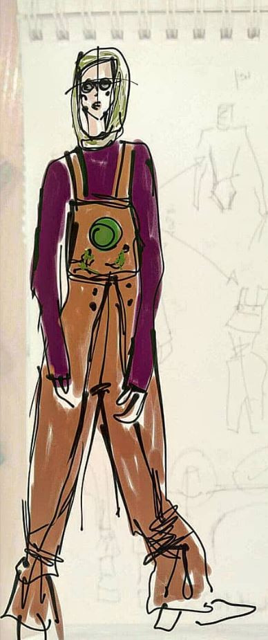 The inspiration for the design of the garment comes from the clothes worn by women who worked in munitions factories during World War II